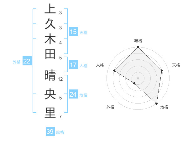 上久木田 晴央里さんを姓名の画数から五運を鑑定