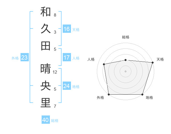 和久田 晴央里さんを姓名の画数から五運を鑑定