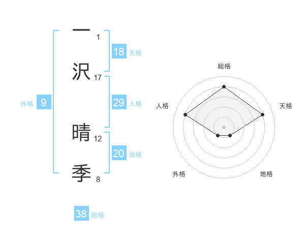 一沢 晴季さんを姓名の画数から五運を鑑定