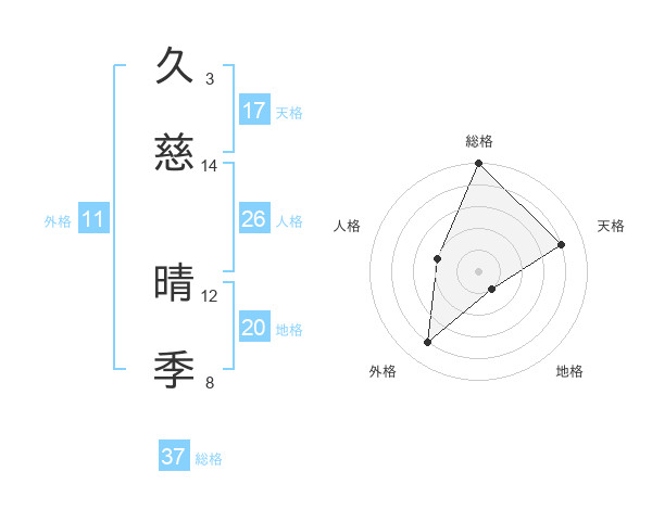 久慈 晴季さんの総格は37画の5点!