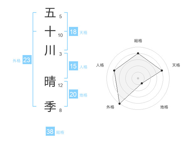 五十川 晴季さんの総格は38画の4点!