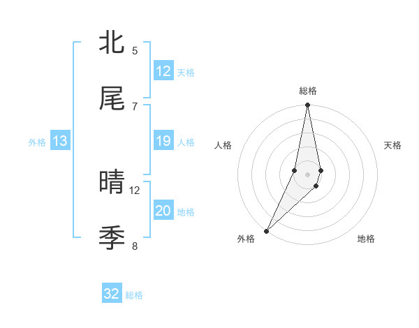 北尾 晴季さんを姓名の画数から五運を鑑定