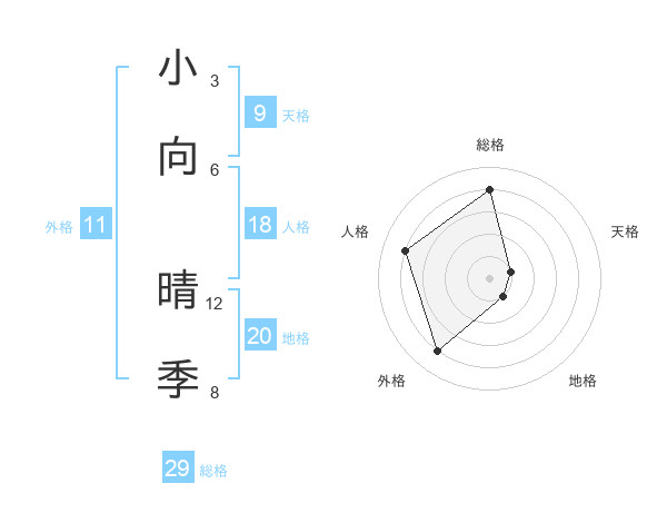 小向 晴季さんの総格は29画の4点!