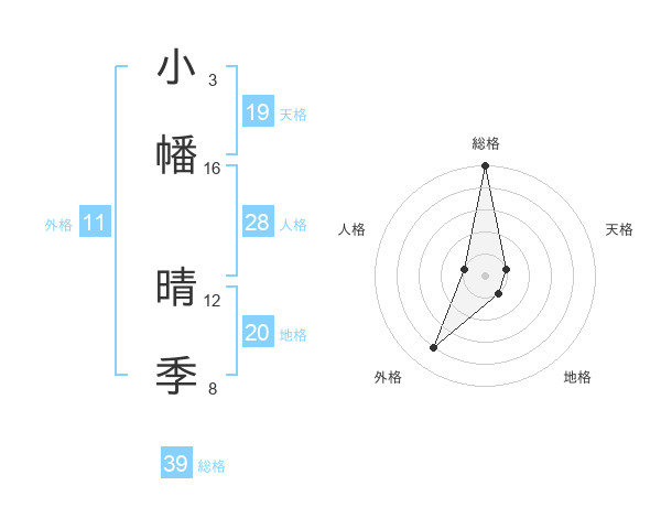 小幡 晴季さんを姓名の画数から五運を鑑定