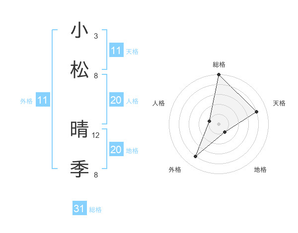 小松 晴季さんの天格は11画の4点!