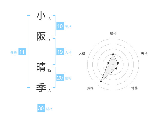 小阪 晴季さんを姓名の画数から五運を鑑定
