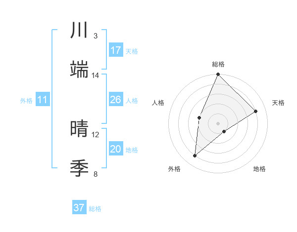 川端 晴季さんの天格は17画の4点!