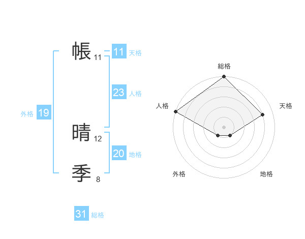 帳 晴季さんの地格は20画の1点!