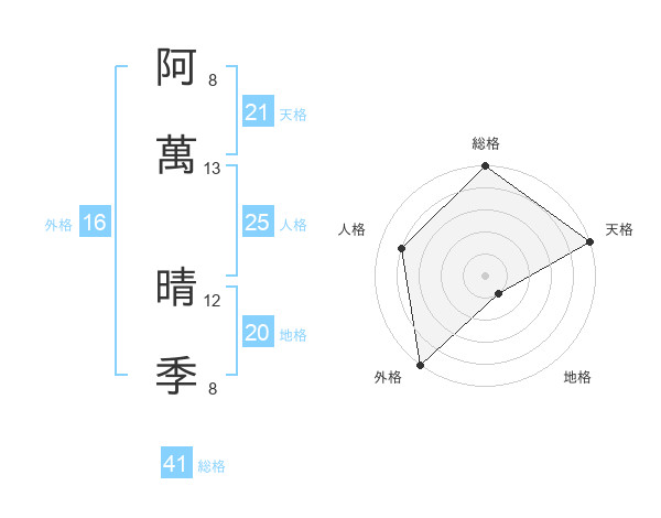 阿萬 晴季さんを姓名の画数から五運を鑑定