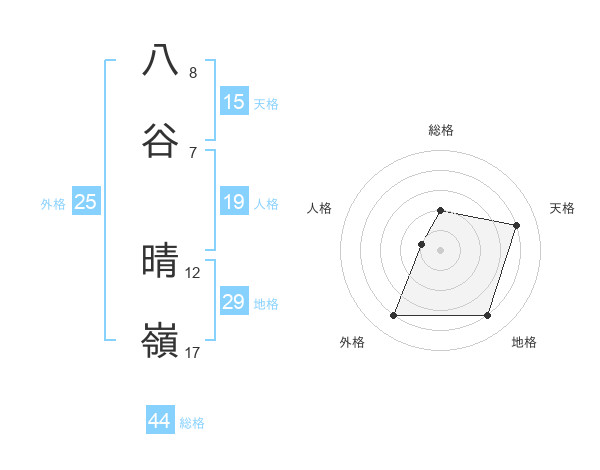 八谷 晴嶺さんを姓名の画数から五運を鑑定