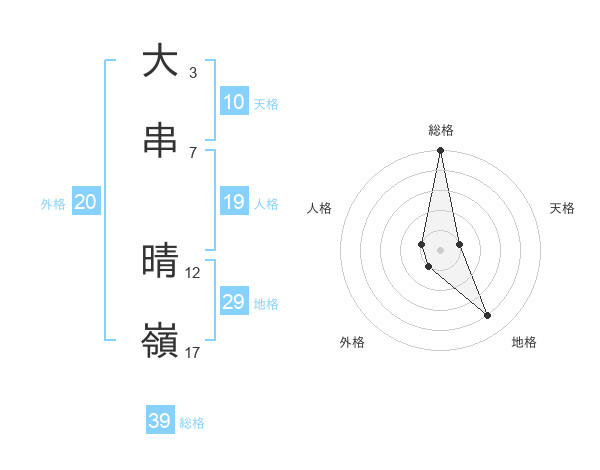 大串 晴嶺さんの総格は39画の5点!