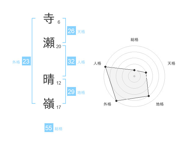 寺瀬 晴嶺さんの外格は23画の5点!