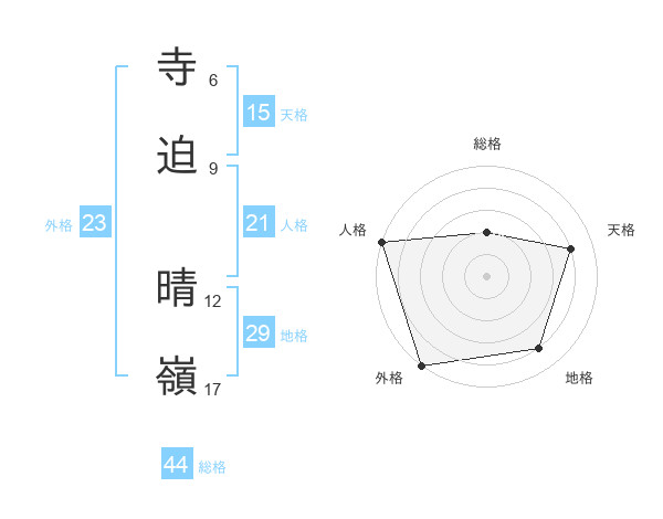 寺迫 晴嶺さんの総格は44画の2点!