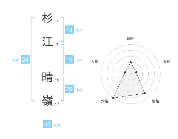 杉江 晴嶺さんを姓名の画数から五運を鑑定
