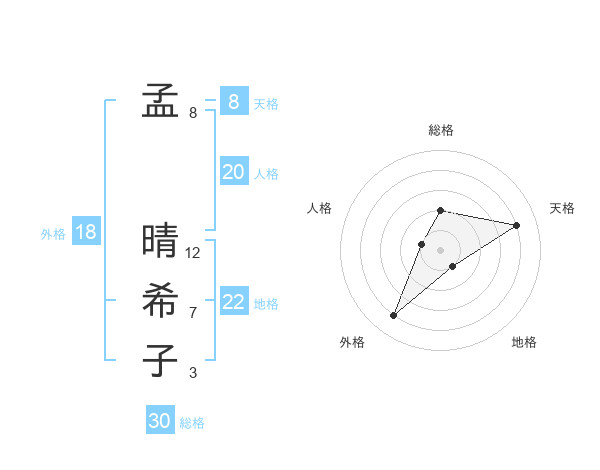 孟 晴希子さんを姓名の画数から五運を鑑定