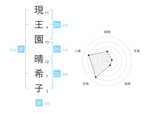 現王園 晴希子さんの総格は50画の2点!