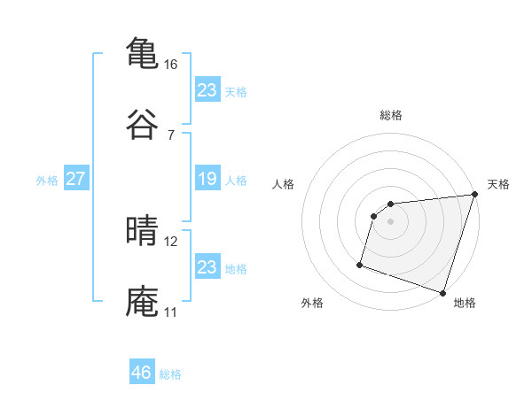 亀谷 晴庵さんの天格は23画の5点!