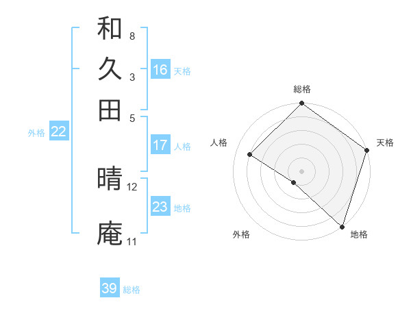 和久田 晴庵さんを姓名の画数から五運を鑑定