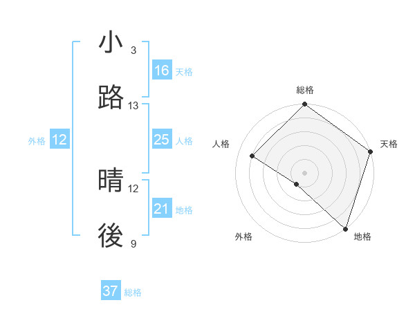 小路 晴後さんの総格は37画の5点!