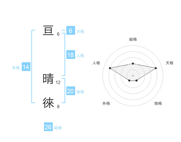 亘 晴徠さんの総格は26画の2点!