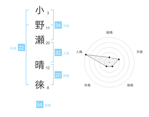 小野瀬 晴徠さんを姓名の画数から五運を鑑定