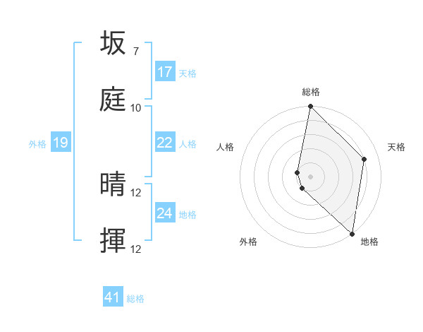 坂庭 晴揮さんを姓名の画数から五運を鑑定