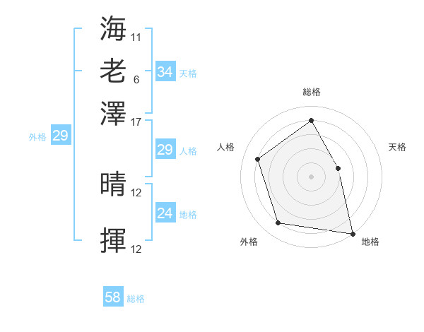 海老澤 晴揮さんの総格は58画の4点!