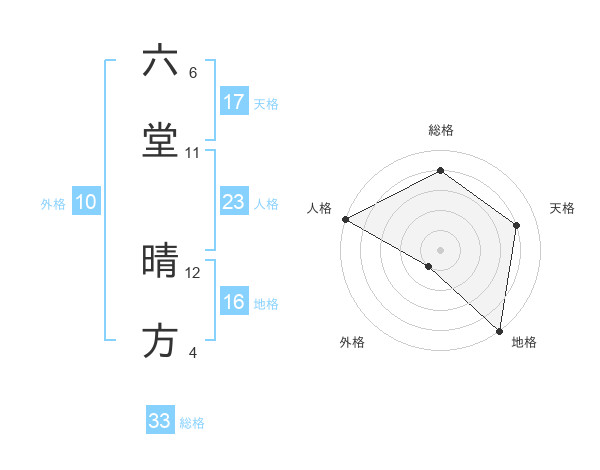 六堂 晴方さんを姓名の画数から五運を鑑定