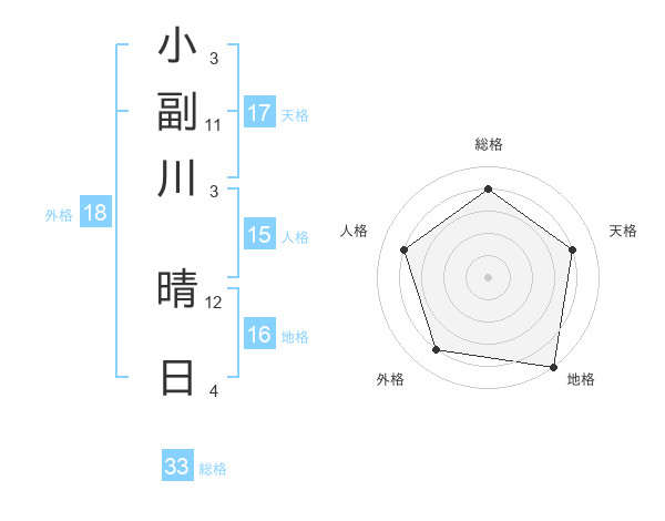 小副川 晴日さんを姓名の画数から五運を鑑定