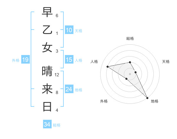 早乙女 晴来日さんを姓名の画数から五運を鑑定