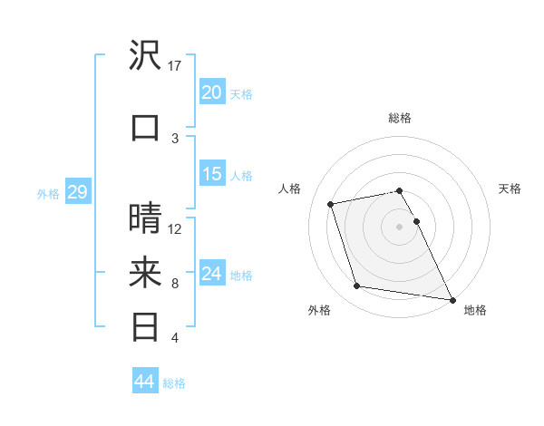沢口 晴来日さんを姓名の画数から五運を鑑定