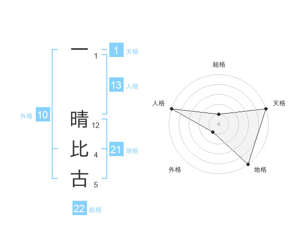 一 晴比古さんの地格は21画の5点!