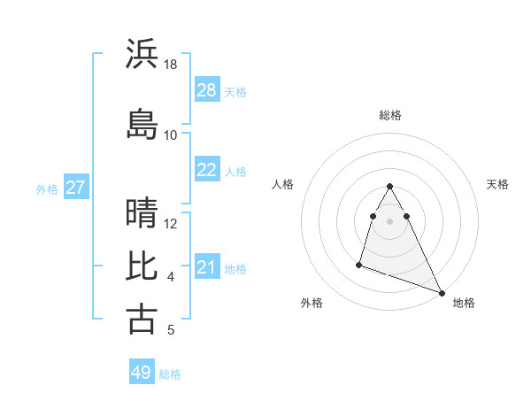 浜島 晴比古さんを姓名の画数から五運を鑑定