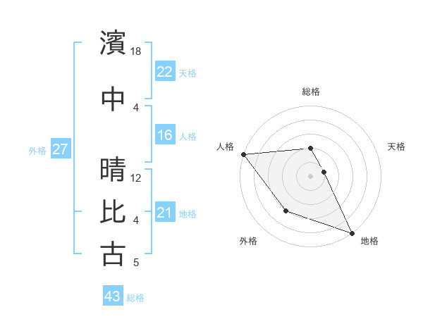 濱中 晴比古さんの総格は43画の2点!