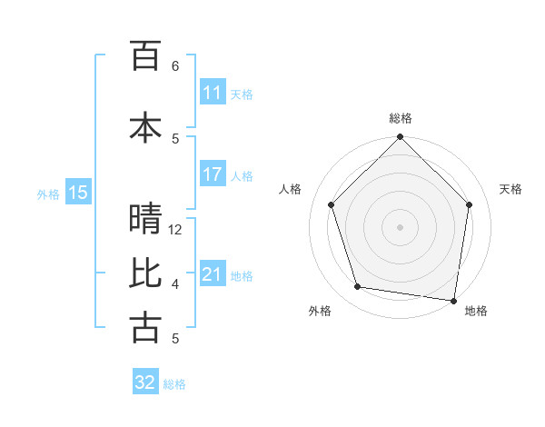 百本 晴比古さんを姓名の画数から五運を鑑定
