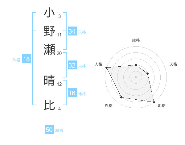 小野瀬 晴比さんを姓名の画数から五運を鑑定