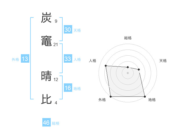 炭竈 晴比さんの総格は46画の1点!