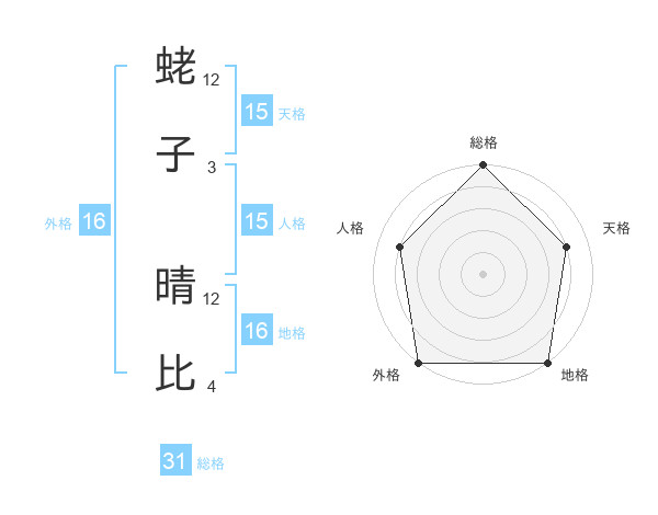蛯子 晴比さんの総格は31画の5点!