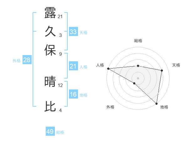 露久保 晴比さんを姓名の画数から五運を鑑定