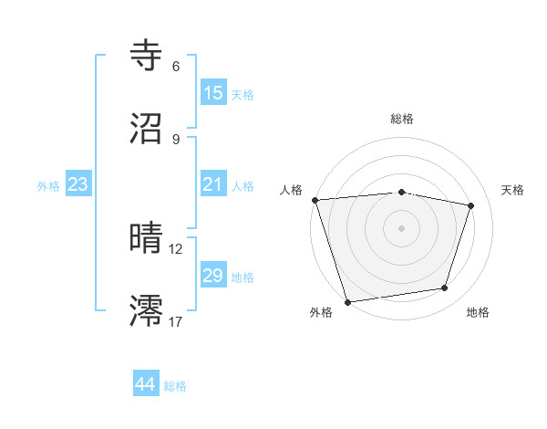 寺沼 晴澪さんを姓名の画数から五運を鑑定