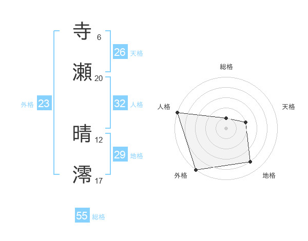 寺瀬 晴澪さんの総格は55画の1点!
