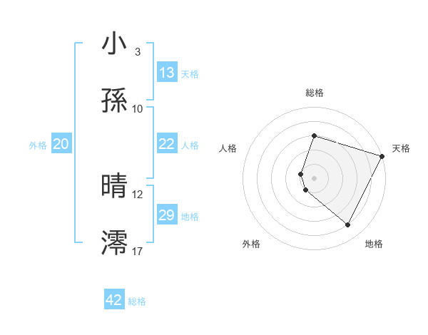 小孫 晴澪さんの天格は13画の5点!