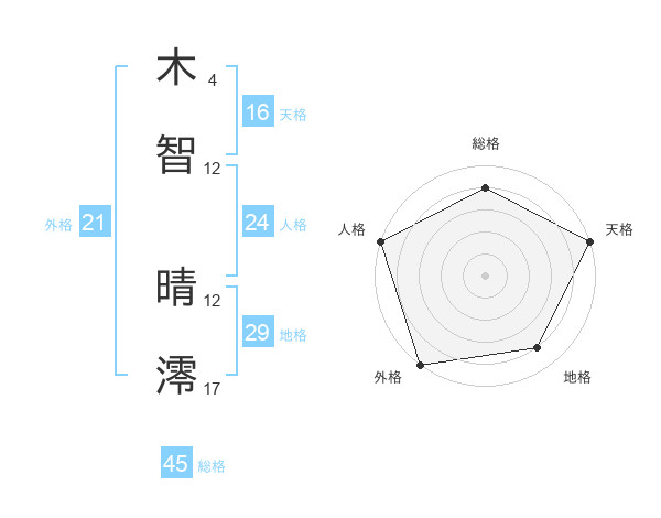 木智 晴澪さんの総格は45画の4点!