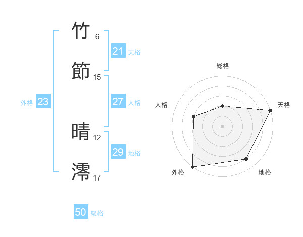 竹節 晴澪さんを姓名の画数から五運を鑑定