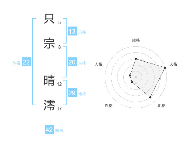 只宗 晴澪さんを姓名の画数から五運を鑑定