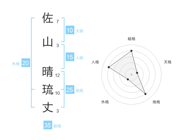 佐山 晴琉丈さんの総格は35画の4点