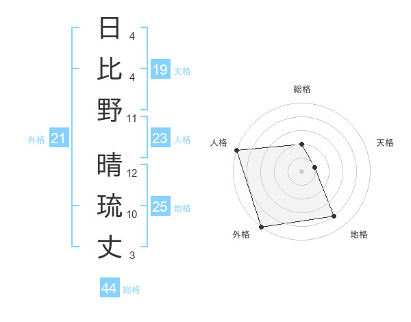 日比野 晴琉丈さんを姓名の画数から五運を鑑定
