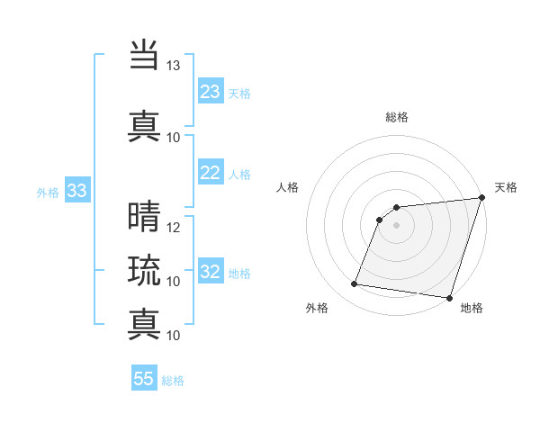 当真 晴琉真さんを姓名の画数から五運を鑑定