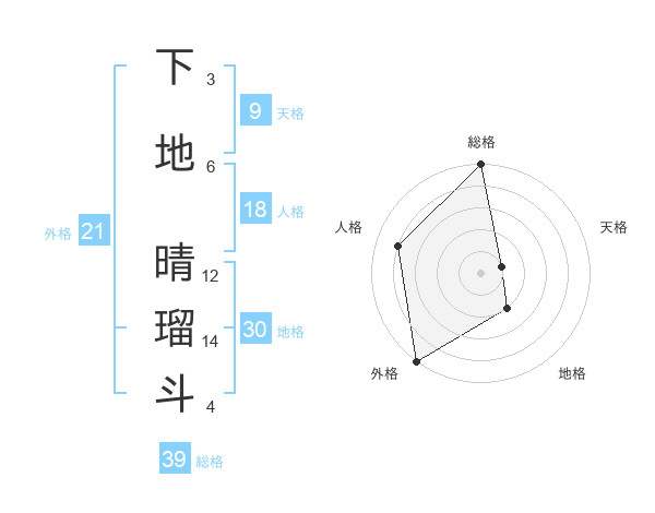 下地 晴瑠斗さんを姓名の画数から五運を鑑定