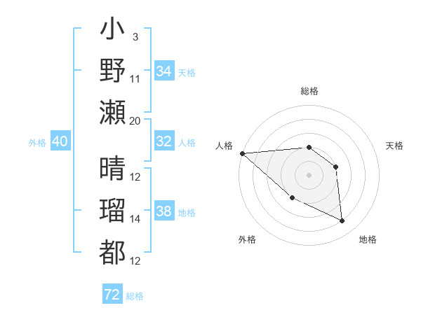 小野瀬 晴瑠都さんの総格は72画の2点!